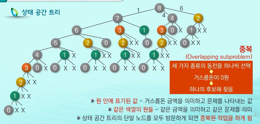 3가지 동전 각각 선택하면 작은 부분문제가 생긴다