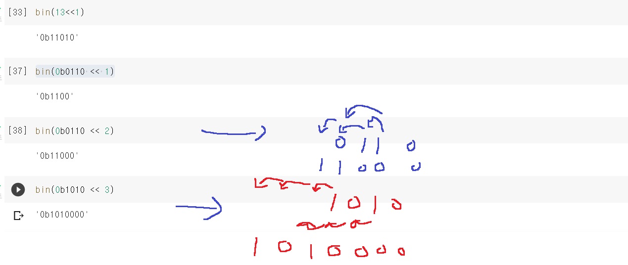 마찬가지로 << 처럼 >>을 수행하면, n번째 자리가 n-1번째 자리로 이동하잖아
