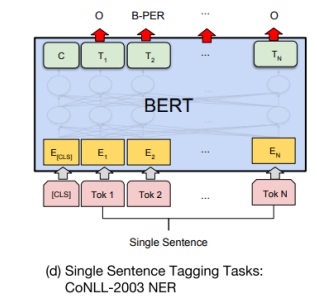 각 문장의 token들의 최종 encoding vector를 동일한 output layer에 넣으면서 각 token의 정보를 예측하는 문제.
