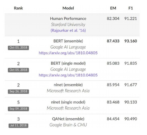 BERT를 이용한 모델이 leaderboard에서 최상위에 차지하고 있다.