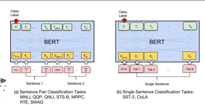 setence pair classification은 2개의 sentence를 <SEP>로 묶어서 하나의 sentence로 만들어서 input으로 준다
