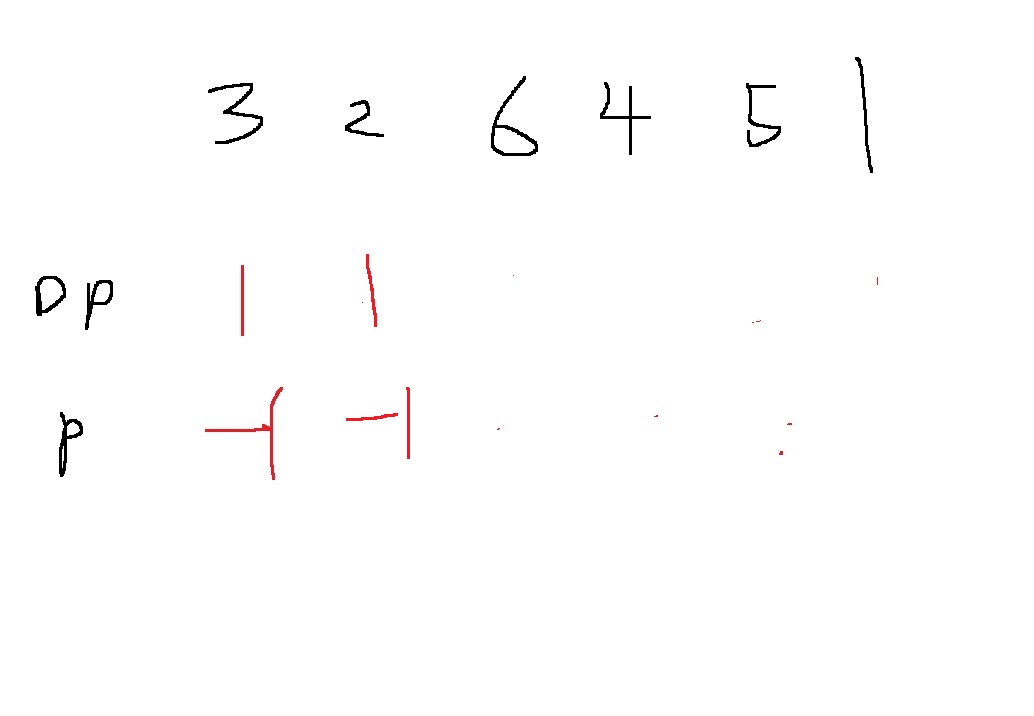 3,2,6,4,5,1의 최장 증가 부분수열을 찾고자 한다.