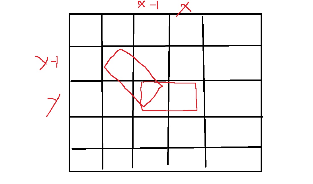 먼저 위와 같이 (x-1,y)지점에 대각선으로 들어오는 경우, 다음 (x,y)에 가로로 붙이면 된다
