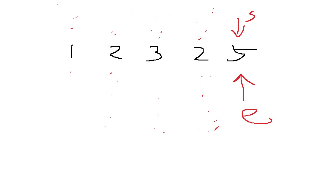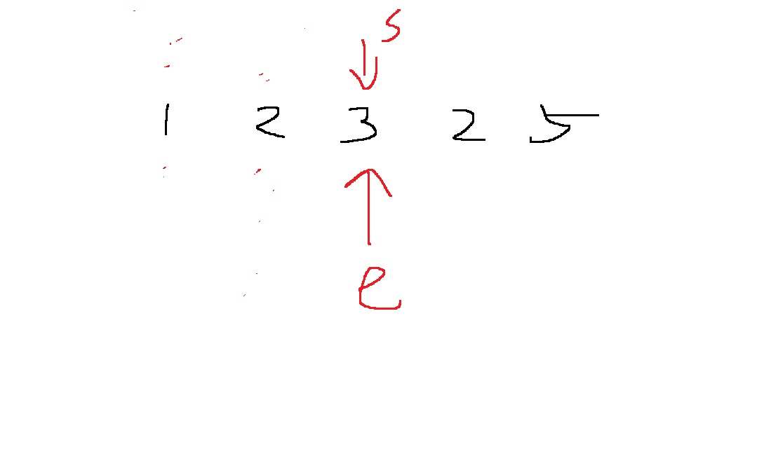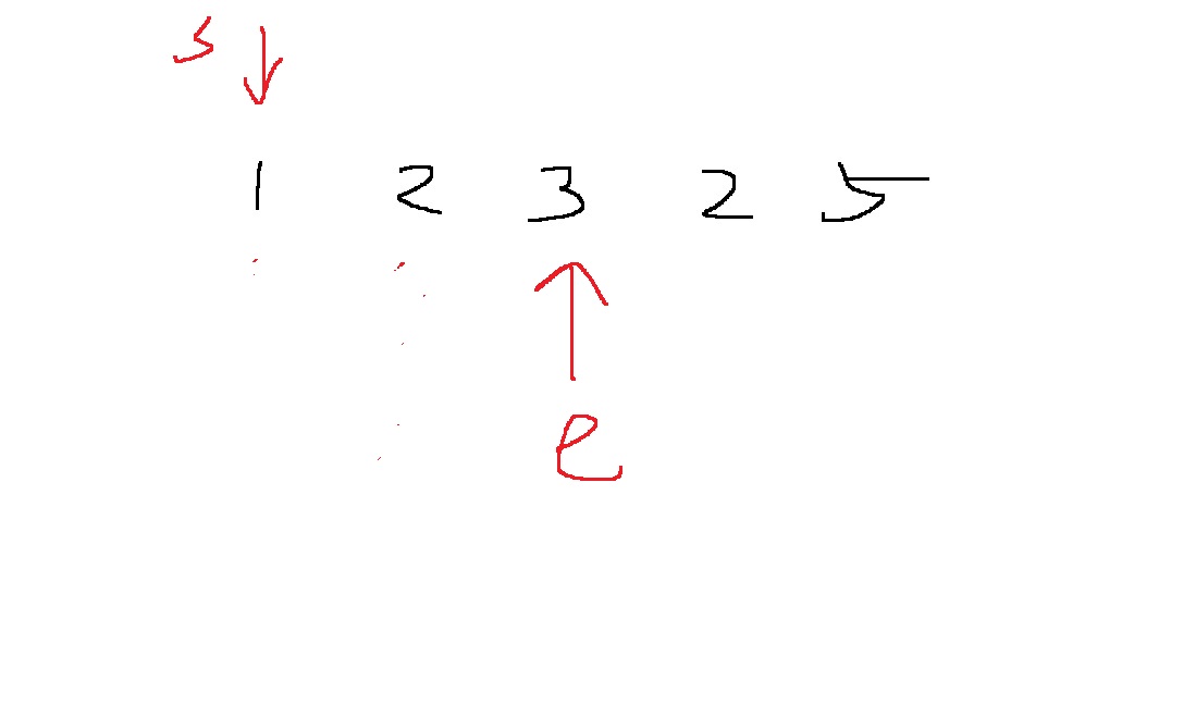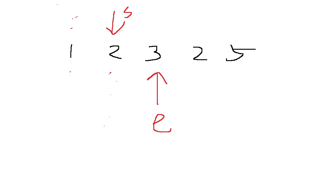 수열 1,2,3,2,5에서 합이 5인 부분 연속 수열은 몇개나 있는지 찾아보자.