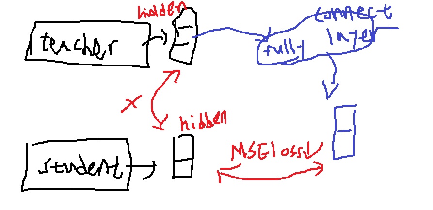 그런데 여기서 드는 의문은 student model은 기본적으로 parameter가 teacher model에 비해 적어서 hidden vector의 차원이 당연히 적을 확률이 높다. 그런데도 teacher model을 따라할수있다고?