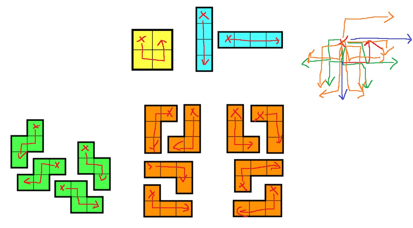 블록의 회전,대칭은 19가지가 가능해서 당연히 실수하기 쉬우니