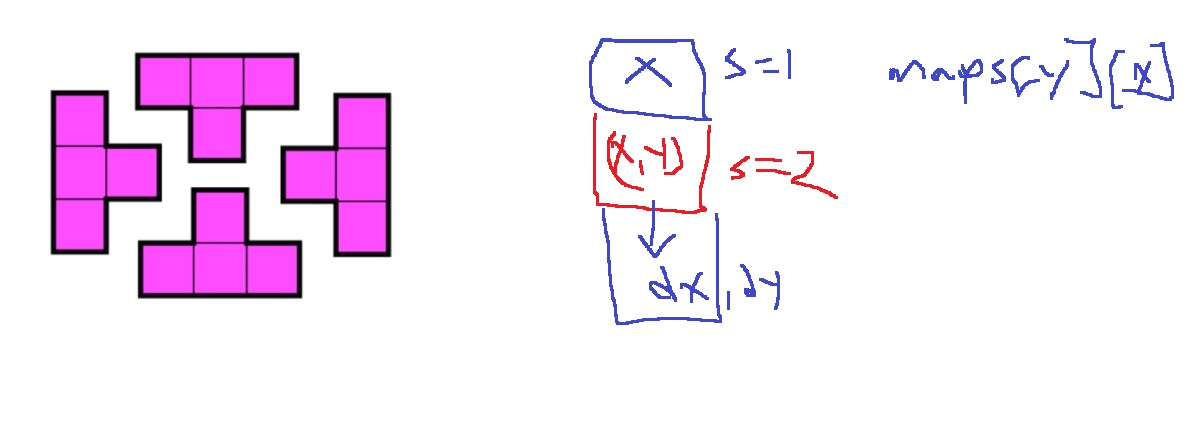 (dx,dy)로 들어가버리면 s=4에서는 이런 블록이 만들어지겠지