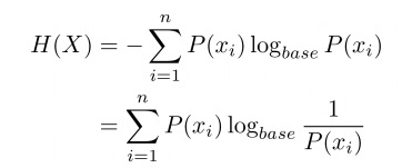 따라서 entropy는 사건의 정보량의 가중평균으로 구해진다.