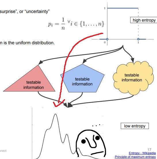 uniform 분포에서 어떤 지식이나 어떤 정보가 포함되어 어떤 사건이 나올 확률이 달라진다면 low entropy가 되는 것이다.