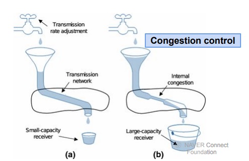 congestion control은 네트워크상에서 어디가 막혀 느려지는것인지, 그것을 어떻게 해결할지 조정하는 작업
