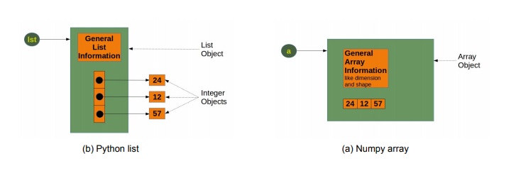 numpy array는 비슷한 data type들을 메모리 상 동일한? 비슷한? 위치에 한번에 잡아서 처리함
