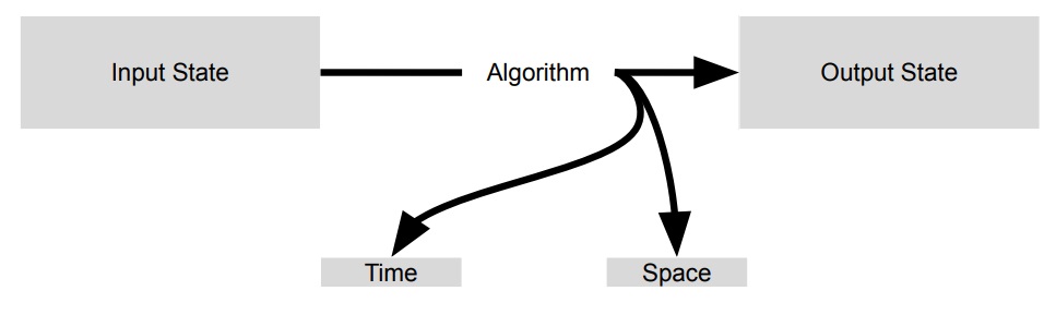 input state에서 algorithm, time, space 등을 받으면 output state로 변화하는 computing 연산