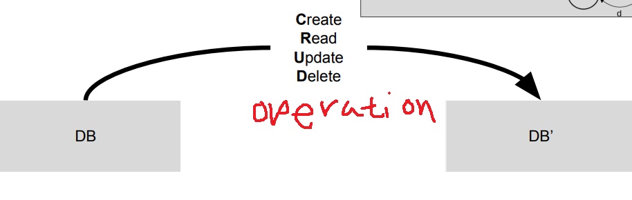 현재 database에서 create, read, update, delete 등 각종 operation을 받으면 새로운 database로 상태 변화