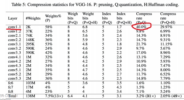 VGG16은 앞단 layer에 필요없는 weight가 많이 몰려있다는 것을 짐작할 수 있음