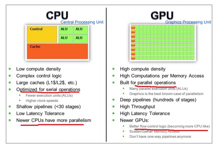 CPU는 sequential한 처리에 유용하고 GPU는 parallel한 처리에 유용하다
