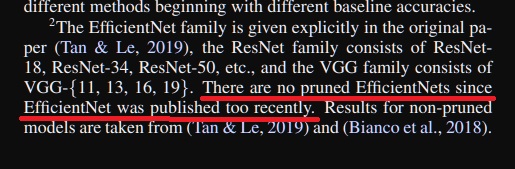 efficientnet은 최신기술이라 pruning을 안해봤다고 논문에서 언급함