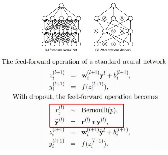 베르누이분포는 0 아니면 1을 뽑으니까 y에 곱해서 feedforward를 수행하면