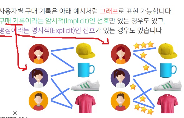 사용자별 구매 기록은 그래프로 표현할 수 있다.
