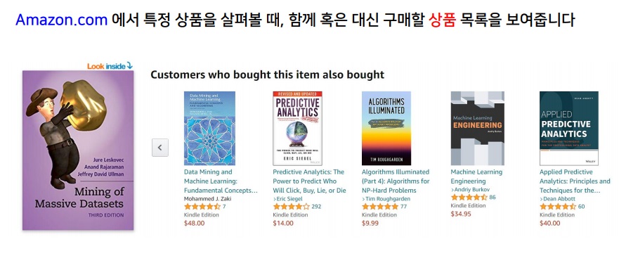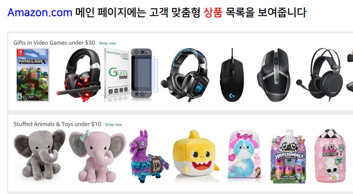 아마존의 웹페이지에서는 이전에 구매한 상품을 바탕으로 앞으로도 구매할 법한 상품을 추천해줌