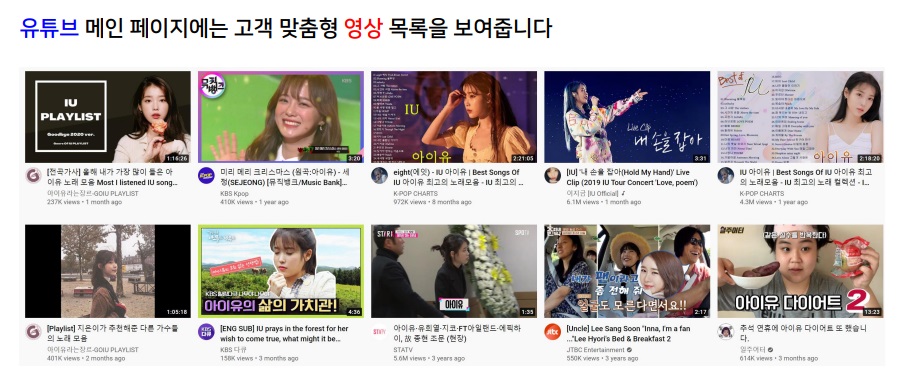 유튜브는 그동안 본 영상을 바탕으로 맞춤형 추천 영상을 제시함
