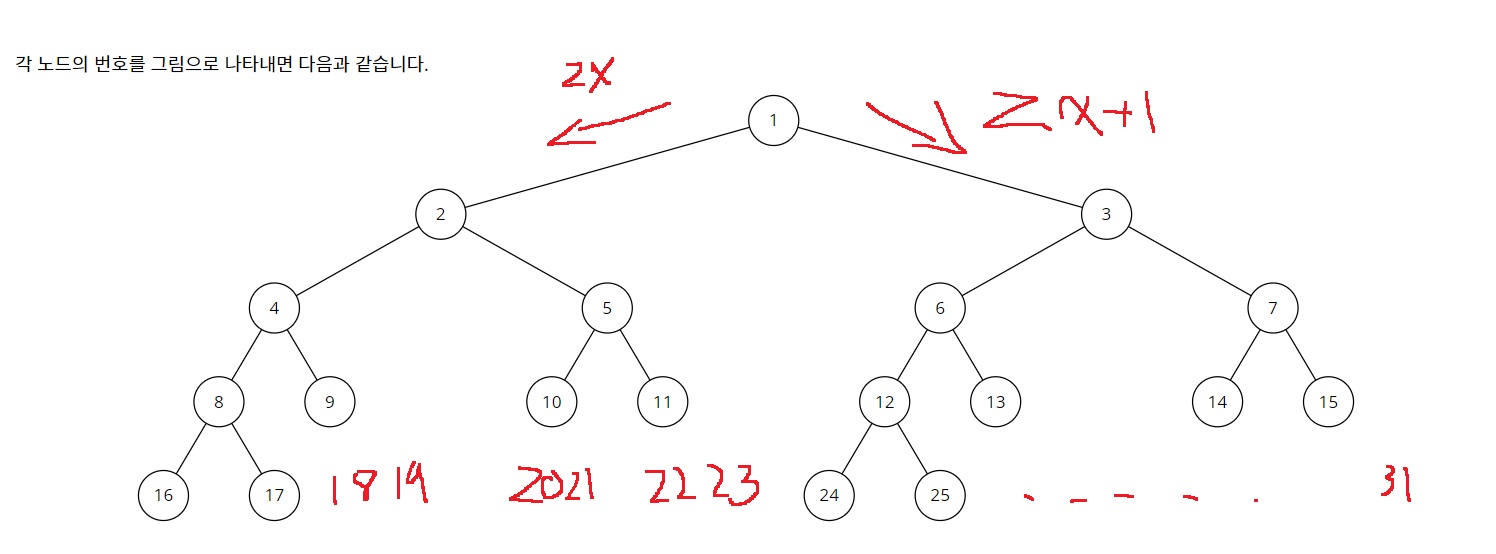 1-2) 각 노드의 번호는 완전이진트리에서 번호를 표현하는 것처럼...
