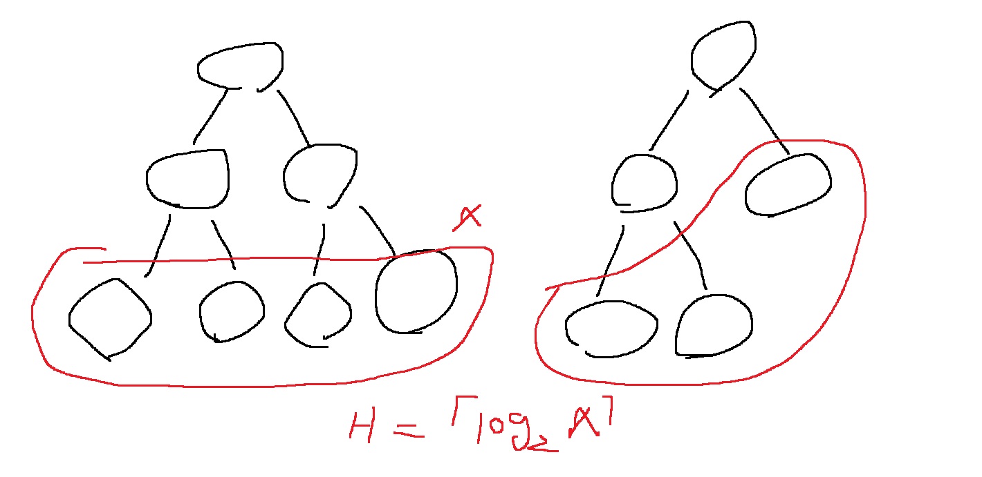 $h= \left \lceil log_{2} x \right \rceil $이기도 하고.. $H= \left \lceil log_{2} x \right \rceil +1 $ 이기도 하고...