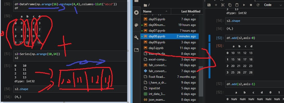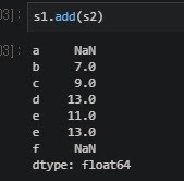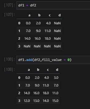 위에선 df1의 4행, 4열에 0을 채워넣은 뒤에 덧셈을 한 것을 추측 할 수 있다