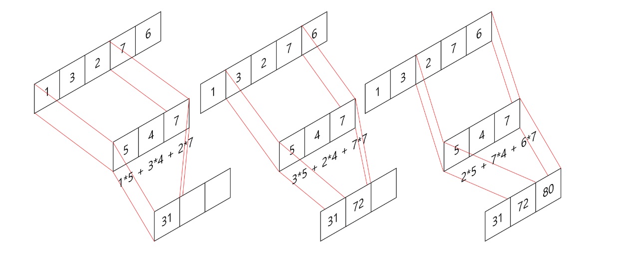 입력데이터와 필터가 주어질때, 1차원 convolution 연산을 수행하는 문제