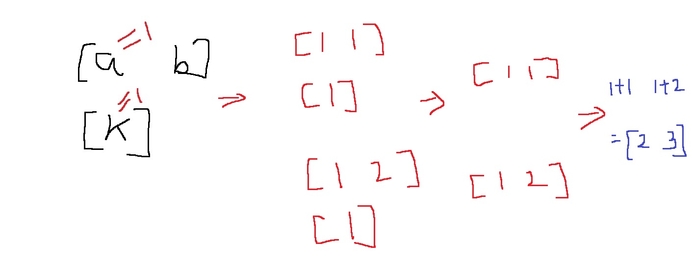 만약 입력이 [a,b]이고 필터가 [k]라고 한다면...?