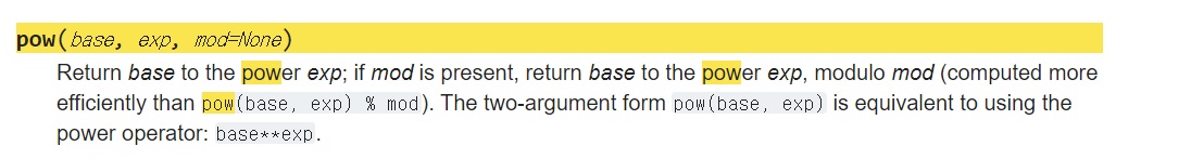 그리고 pow(x,y)는 x**y와 동일하다고도 나와 있음