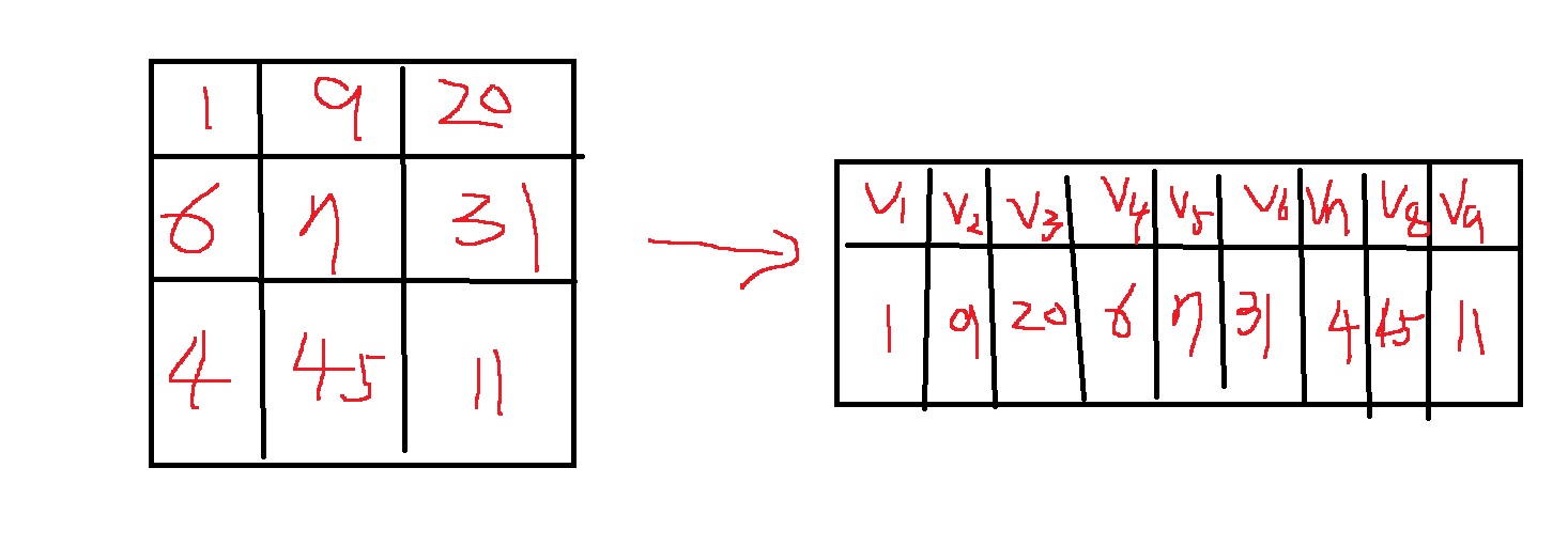 하나의 방법은 이미지 행렬을 1차원의 벡터로 펼쳐준다.