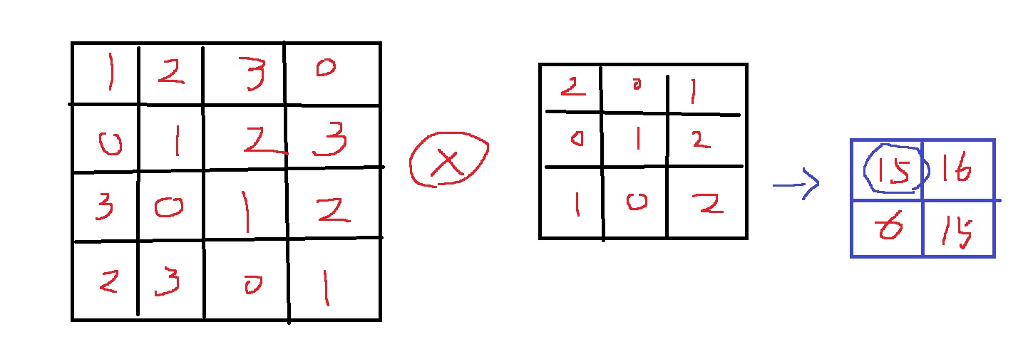 convolution은 filter가 입력 이미지를 훑으면서 겹치는 부분의 서로 대응하는 원소를 곱하여 모두 더한 값을 출력하는 연산