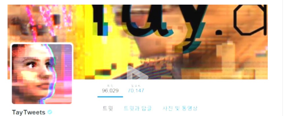 테이의 트위터 프로필 사진은 디지털 세상에만 존재하는 인격임을 보여주기 위해 큰 픽셀을 이용했는데, 이는 보는 이에게 위화감을 주기에 충분했습니다.