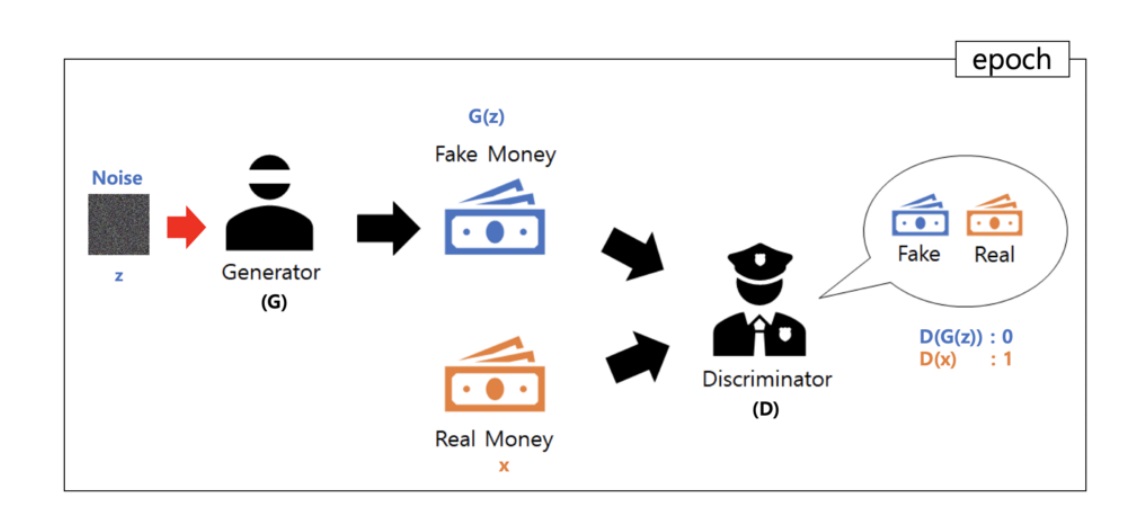 GAN을 처음 제안한 이안 굿펠로우는 GAN을 경찰과 위조지폐범의 관계로 설명하였다.