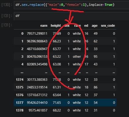 sex의 열 데이터를 바로 바꿔버린다
