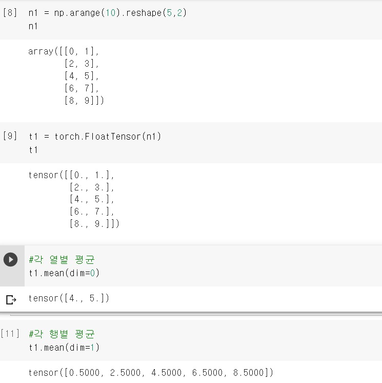 numpy의 axis 연산이 pytorch에서는 dim을 사용