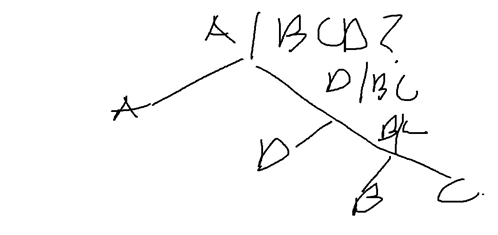 왜냐하면 A가 나올 확률이 0.5이기 때문에 애초에 A이니? BCD이니?라고 물어보는 것이 효과적이다.
