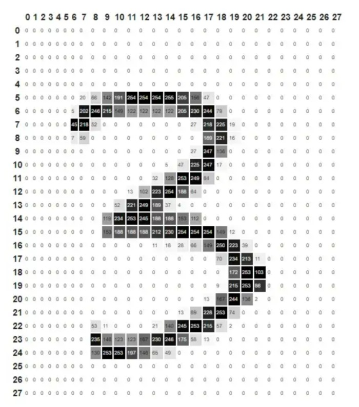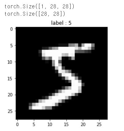 3차원 행렬은 [1,28,28]과 같은 형태로 각각 [Channel, Width, Height]를 나타낸다.