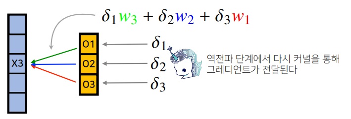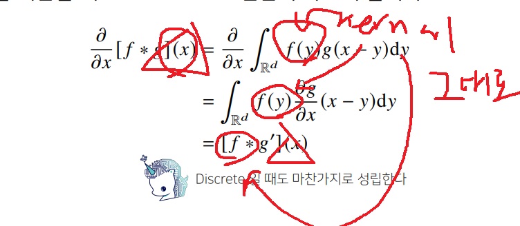 핵심은... convolution을 미분하면 여전히 해당 kernel과의 convolution으로 나타나서.. 출력이 입력으로 전달되면서...