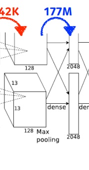 13*13*128 input에서 1줄이 output 2048 모두에 연결이 되거든