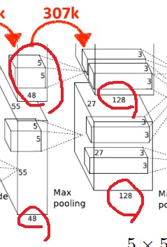 총 2줄이니까 5*5*48*128*2개의 parameter를 가진다