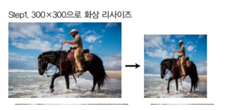 첫번째 단계는 이미지 전처리로, 300*300 픽셀 크기로 resize시키며, 색 정보 표준화도 수행한다