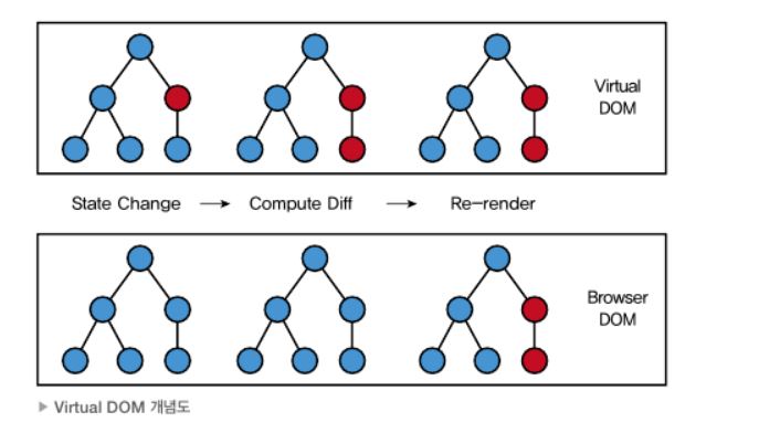 어떤 상태의 변경이 일어나면, virtual DOM에서 업데이트해야할 최소한의 부분만 검색하고,