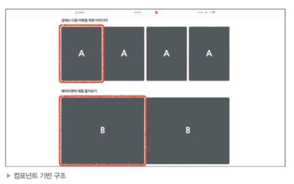 모든 페이지가 컴포넌트로 구성되어 있고, 하나의 컴포넌트는 또 다른 여러개의 컴포넌트 조합으로 구성될 수 있다