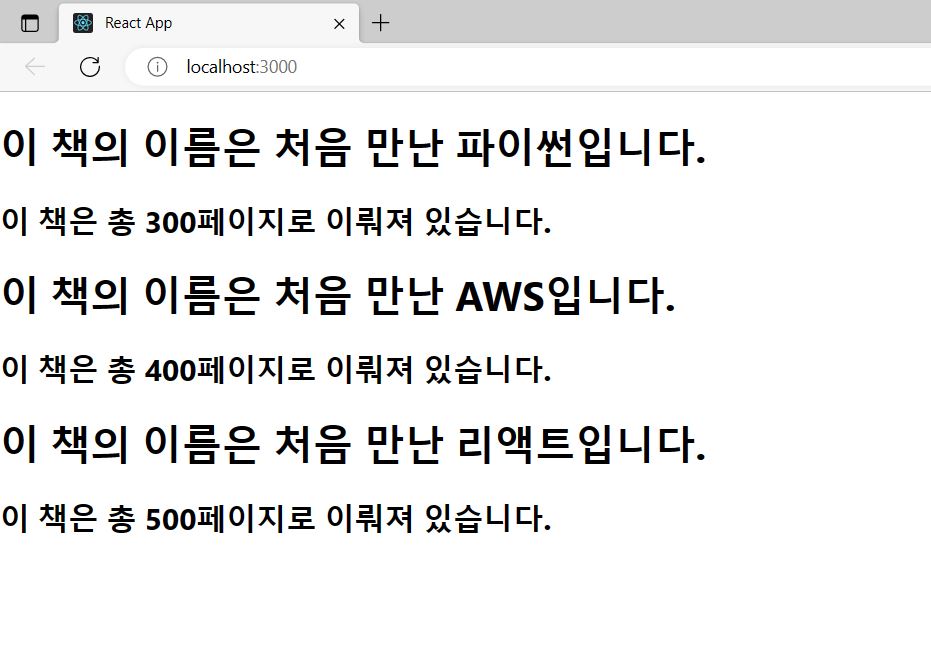 Library 컴포넌트는 총 3개의 Book 컴포넌트를 렌더링한다.
