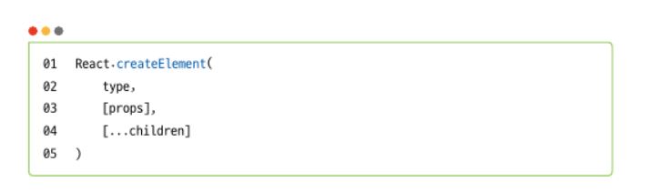 여기서 JSX 코드를 자바스크립트 코드로 변환하는 역할을 하는 것이 리액트의 createElement()라는 함수이다.