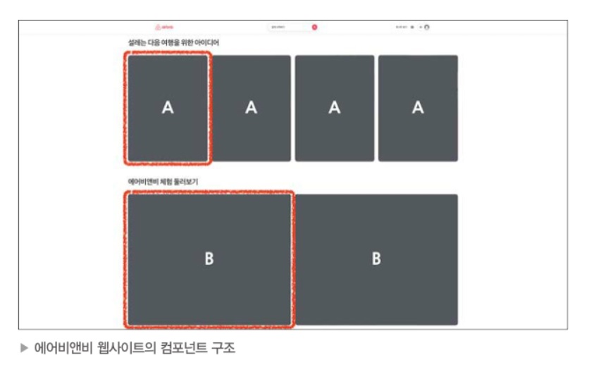 이러한 컴포넌트를 여러 번 반복적으로 사용해서 하나의 페이지를 구성하고 있다.