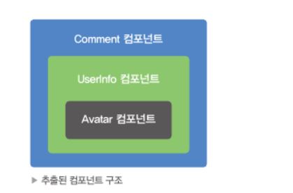 Comment 컴포넌트가 UserInfo 컴포넌트를 포함하고 있고, UserInfo 컴포넌트가 Avatar 컴포넌트를 포함하고 있는 구조이다.