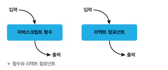 하지만 리액트 컴포넌트의 입력과 출력은 일반적인 자바스크립트 함수와는 조금 다르다.