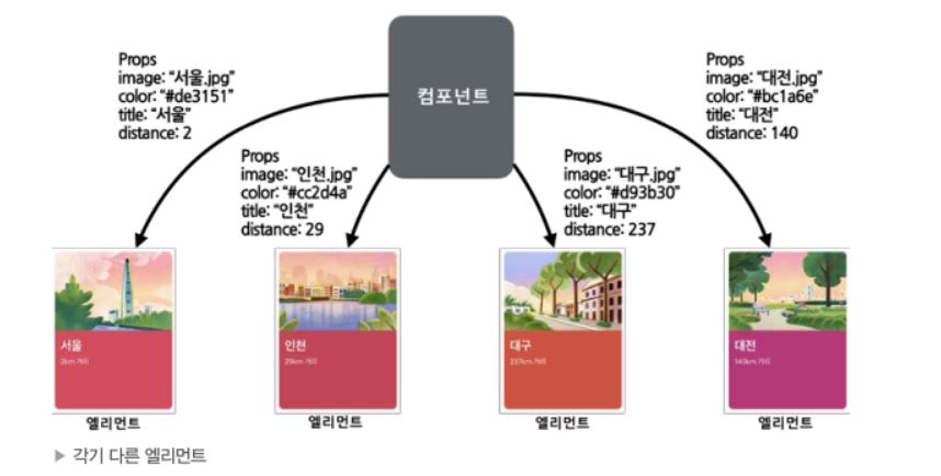 컴포넌트에 어떤 데이터를 전달하고, 전달된 데이터에 따라 다른 모습의 엘리먼트를 화면에 렌더링하고 싶다면, 해당 데이터를 props에 넣어 전달하는 것이다.